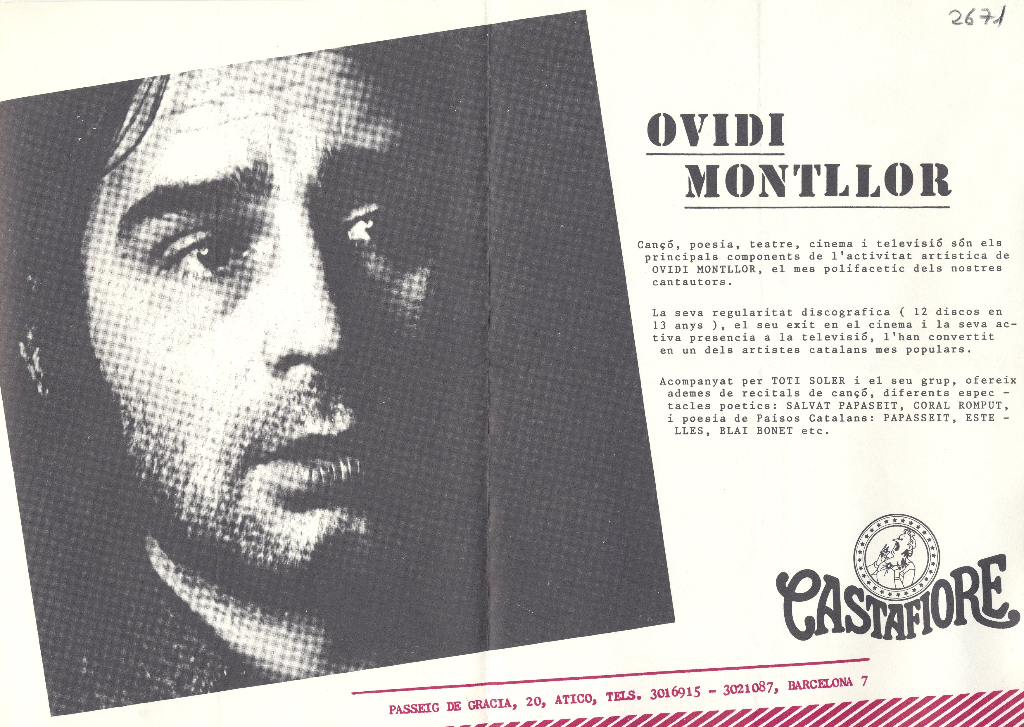 s.d. Ovidi Montllor. Toti Soler; Salvat Papasseit; Estellés; Blai Bonet; Castafiore. Barcelona.
