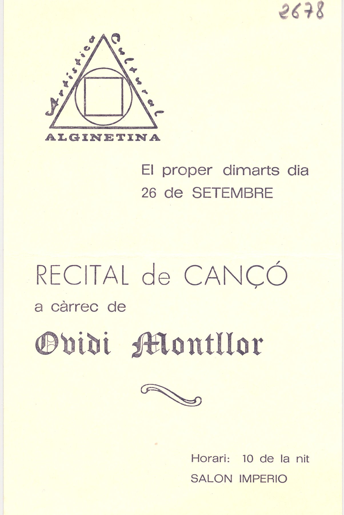 s.d. Recital de cançó. Ovidi Montllor. 4 exemplars.