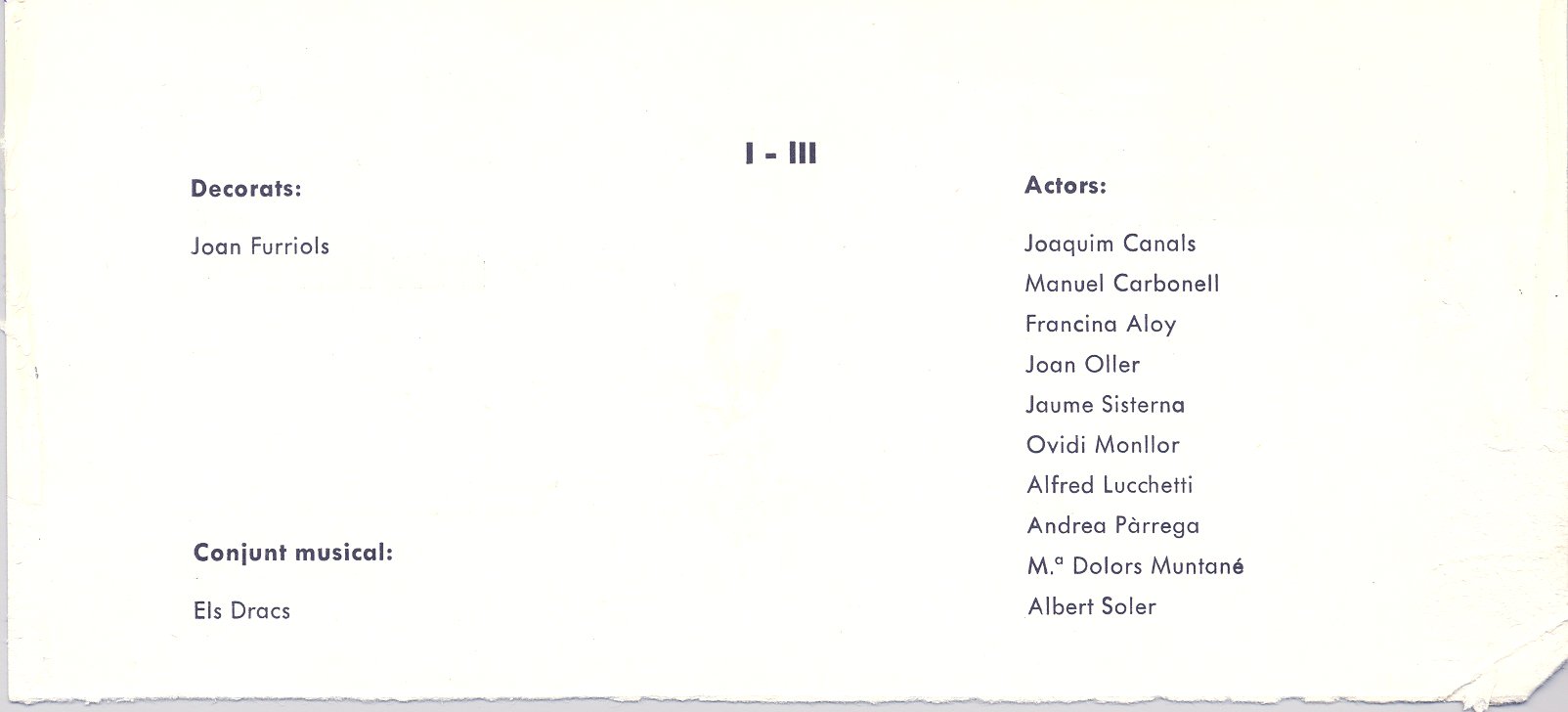 1966, juny, 17. El petit i el gran testament. Zeami; O. M; Francina Aloy; Alfred Lucchetti.