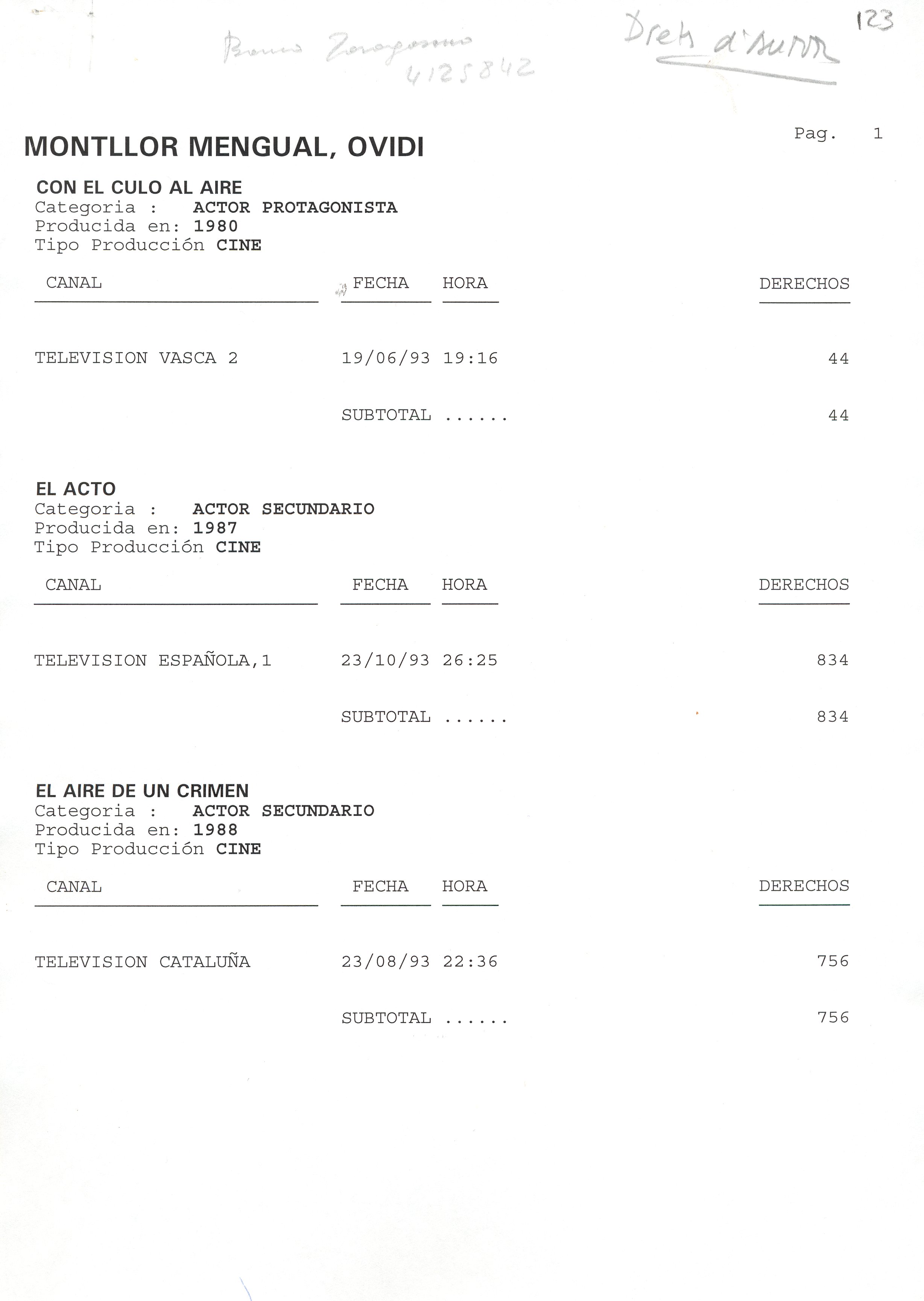 1985, novembre, 20 al 1995, gener, 27. Carpeta. SGAE. Carpeta formada per: 13 cartes mecanoscrites de un total de 39 fulls, inclou a més a més 1 repertori de cançons d’O. M. de 1982; El registrament de cançons d’O.M; Enregistrament de l’espectacle Ovidi Montllor diu Sagarra; Fulls de declaració de drets sobre les cançons d’Ovidi; Partitures presentades a l’SGAE; El repertori d’obres d’O. M. com a actor de cine i T.V; Drets d’autor com a actor d’O.M; Declaració de drets d’autor com a actor per l’AISGE; Contracte d’adhesió a l’AIE; Resum informatiu sobre Poliza col·lectiva d’accidents corporals de l’AIE; 2 revistes de l’AIE; 1 revista de l’AELC; Còpia de la compareixença davant la comissió de política cultural del parlament de Catalunya de l’ACIC.