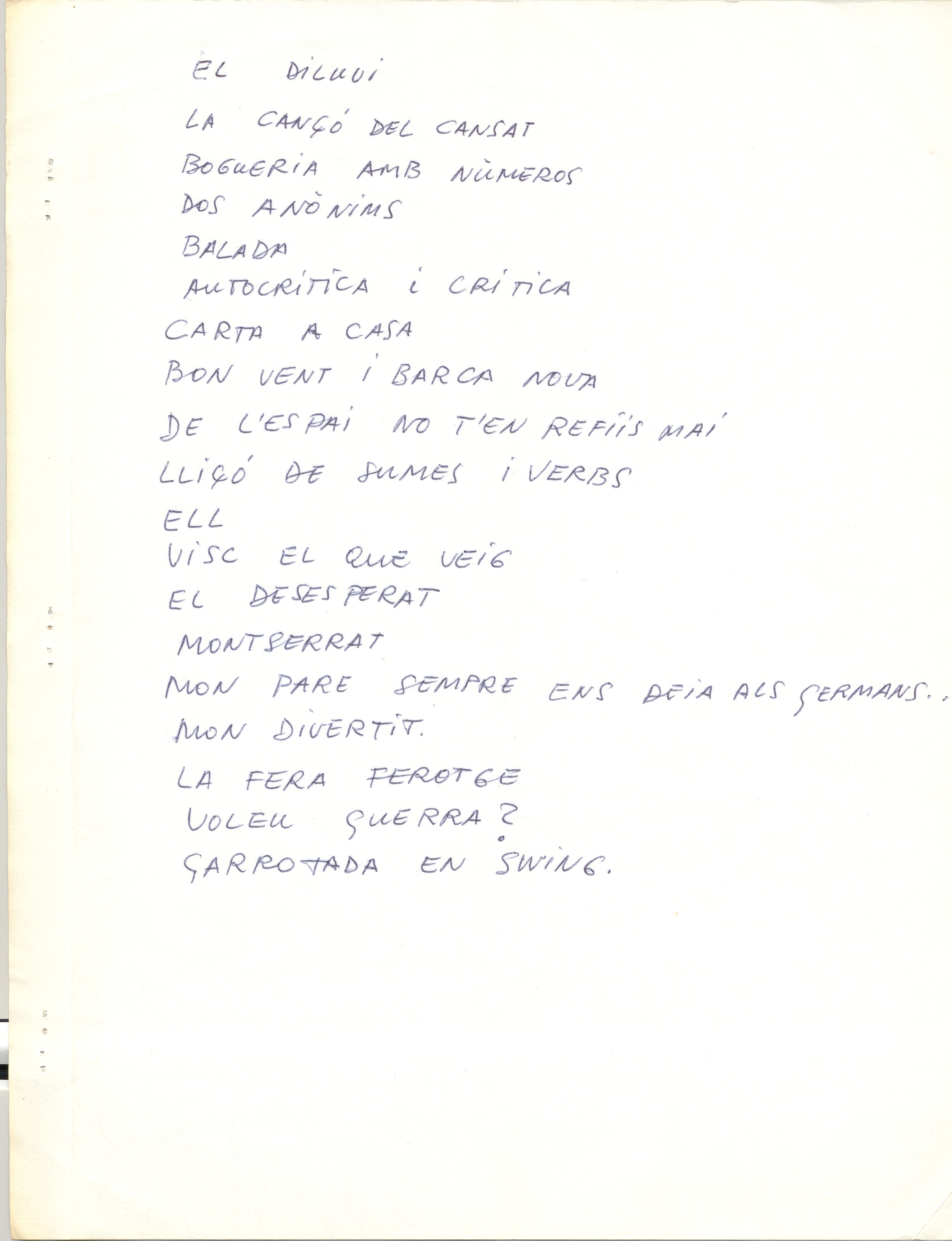 1985, novembre, 20 al 1995, gener, 27. Carpeta. SGAE. Carpeta formada per: 13 cartes mecanoscrites de un total de 39 fulls, inclou a més a més 1 repertori de cançons d’O. M. de 1982; El registrament de cançons d’O.M; Enregistrament de l’espectacle Ovidi Montllor diu Sagarra; Fulls de declaració de drets sobre les cançons d’Ovidi; Partitures presentades a l’SGAE; El repertori d’obres d’O. M. com a actor de cine i T.V; Drets d’autor com a actor d’O.M; Declaració de drets d’autor com a actor per l’AISGE; Contracte d’adhesió a l’AIE; Resum informatiu sobre Poliza col·lectiva d’accidents corporals de l’AIE; 2 revistes de l’AIE; 1 revista de l’AELC; Còpia de la compareixença davant la comissió de política cultural del parlament de Catalunya de l’ACIC.