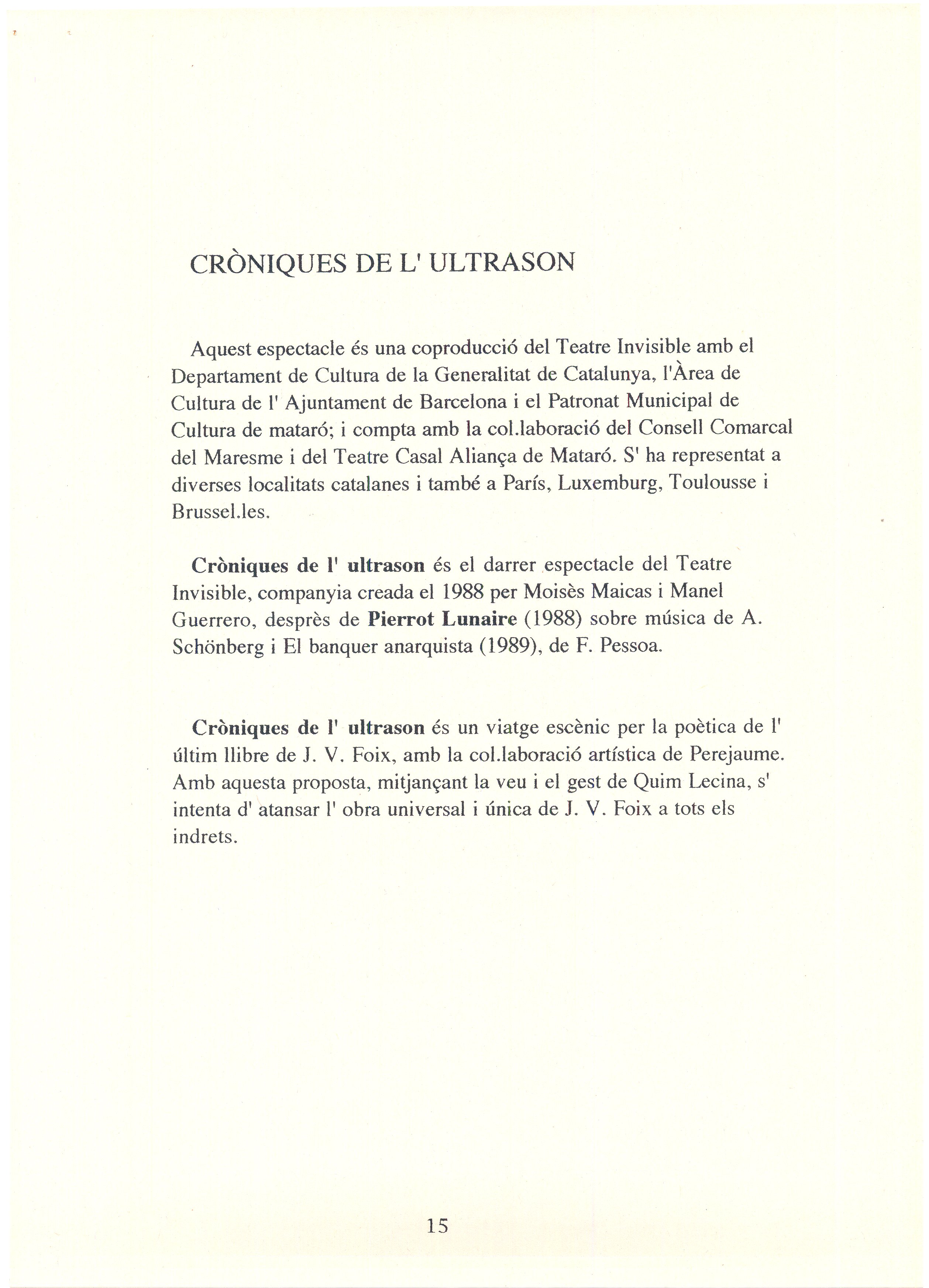 1993. Barcelona. Pues de poeta ’93. Programa de promoció d’espectacles amb textos poètics, lectures dramatitzades i lectures fetes pels mateixos poetes. Carpeta. Recull d’espectacles, on apareix O. M. i Toti Soler amb espectacle de poetes.