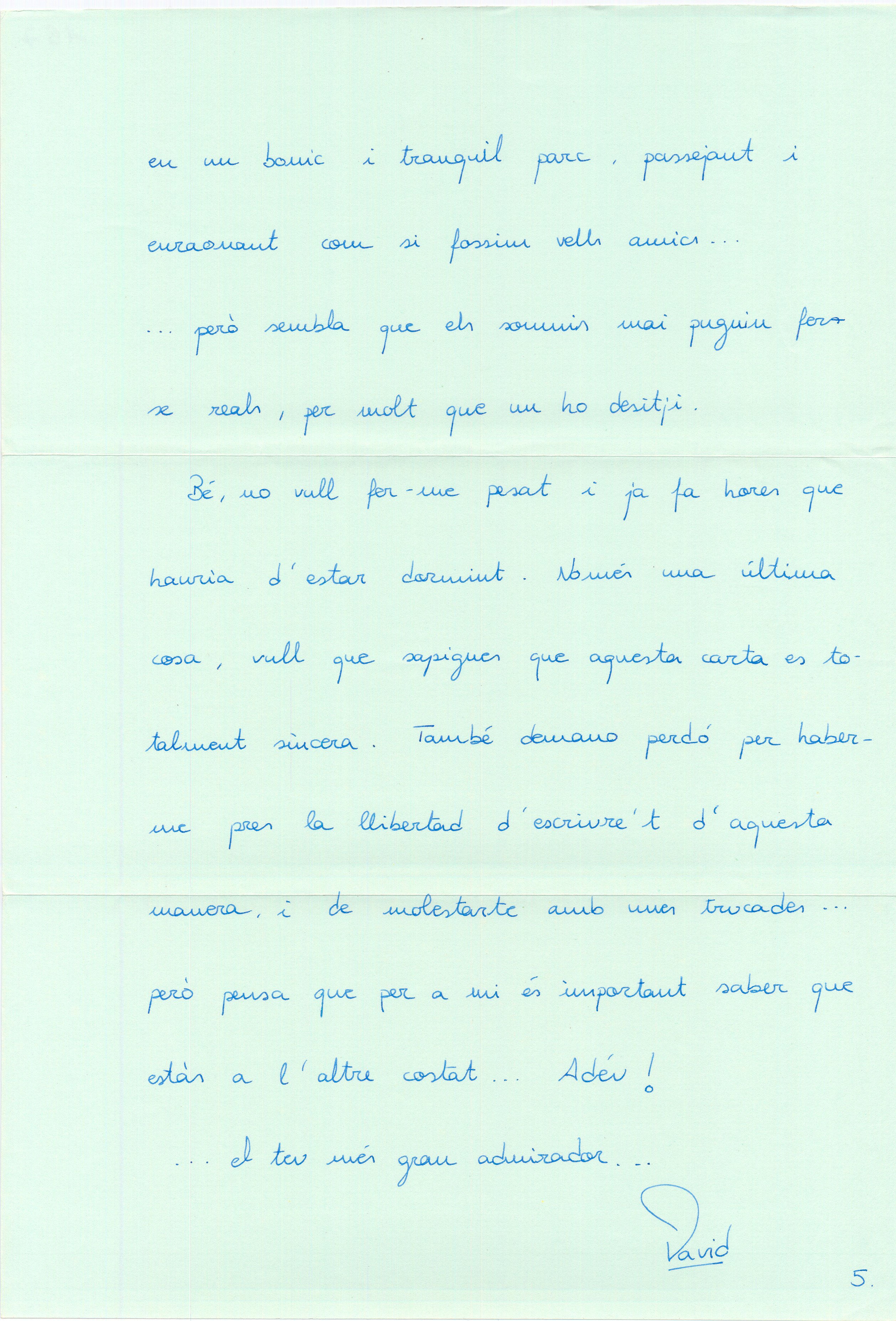 1991, gener, 10. Barcelona. Carta manuscrita. 5 fulls. Carta de David.