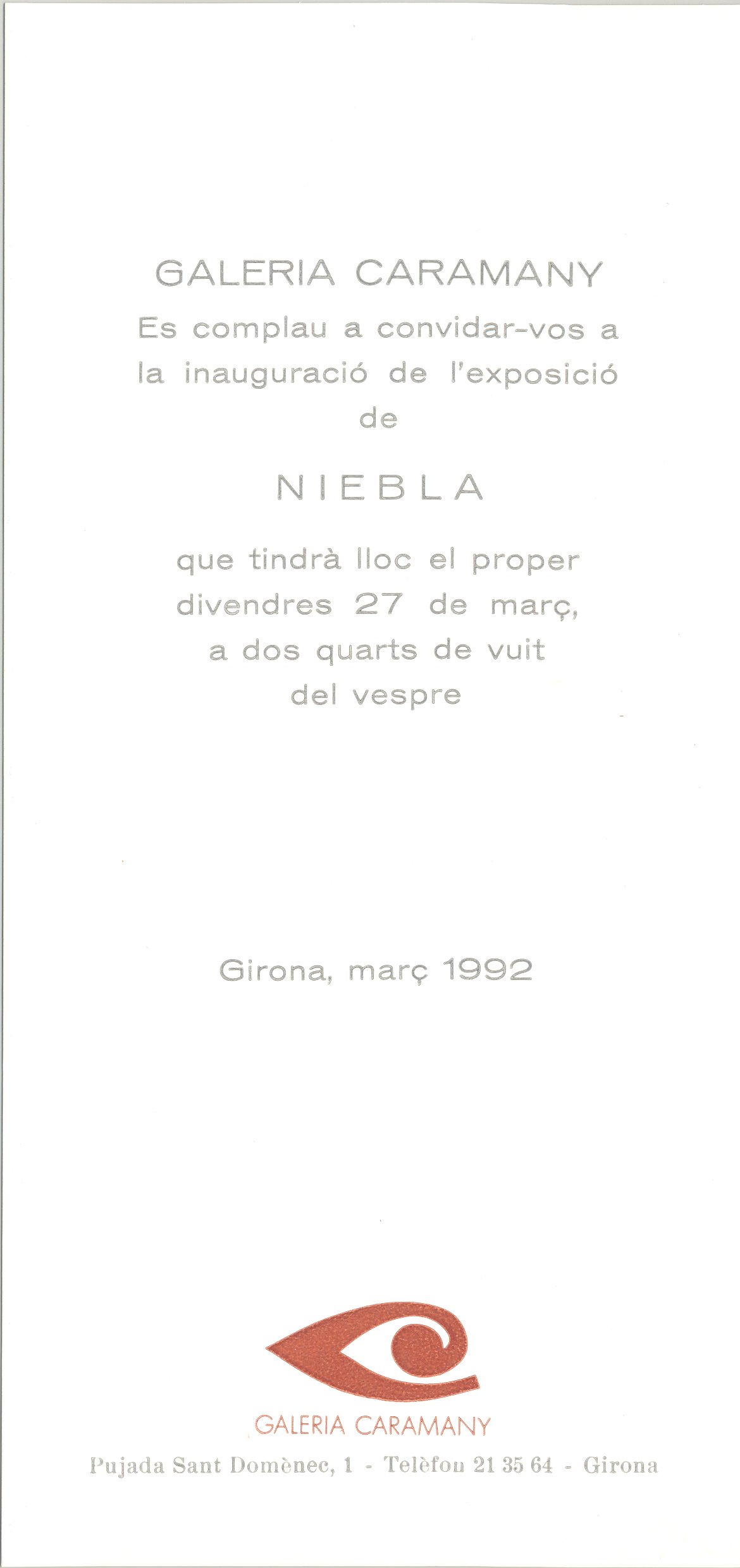 1992, març, 27. Postal mecanoscrita. Invitació de la Galeria Caramany a l’exposició de Niebla.