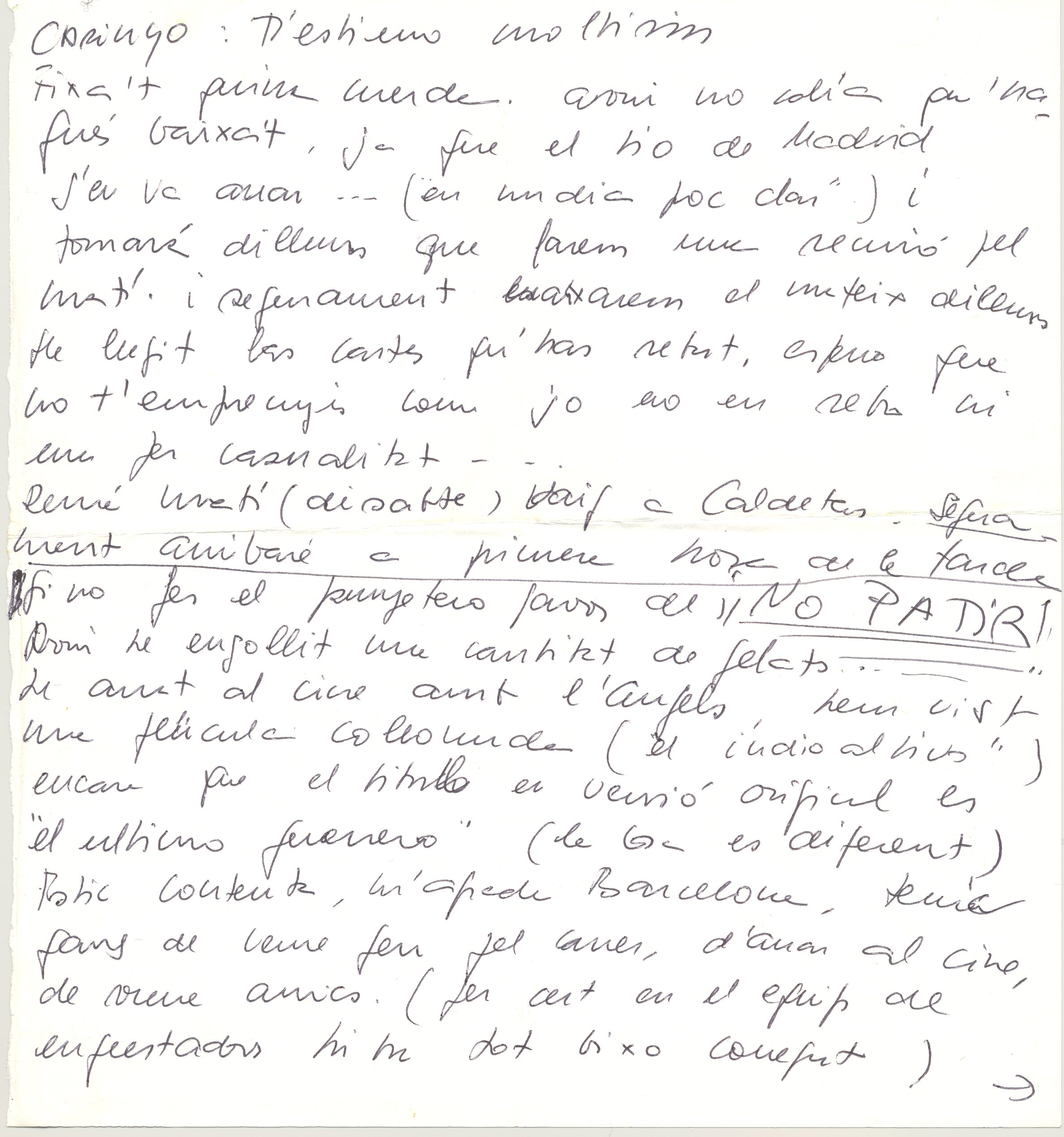 s.d. Cartes manuscrites. 3 fulls. Conjunt de notes dirigides a Marta Molins, i de Marta dirigides a O. M. Pere; Pep; Francesc Tons; Fran; Benet. Sabadell; Caldetes; Barcelona; Marroc.
