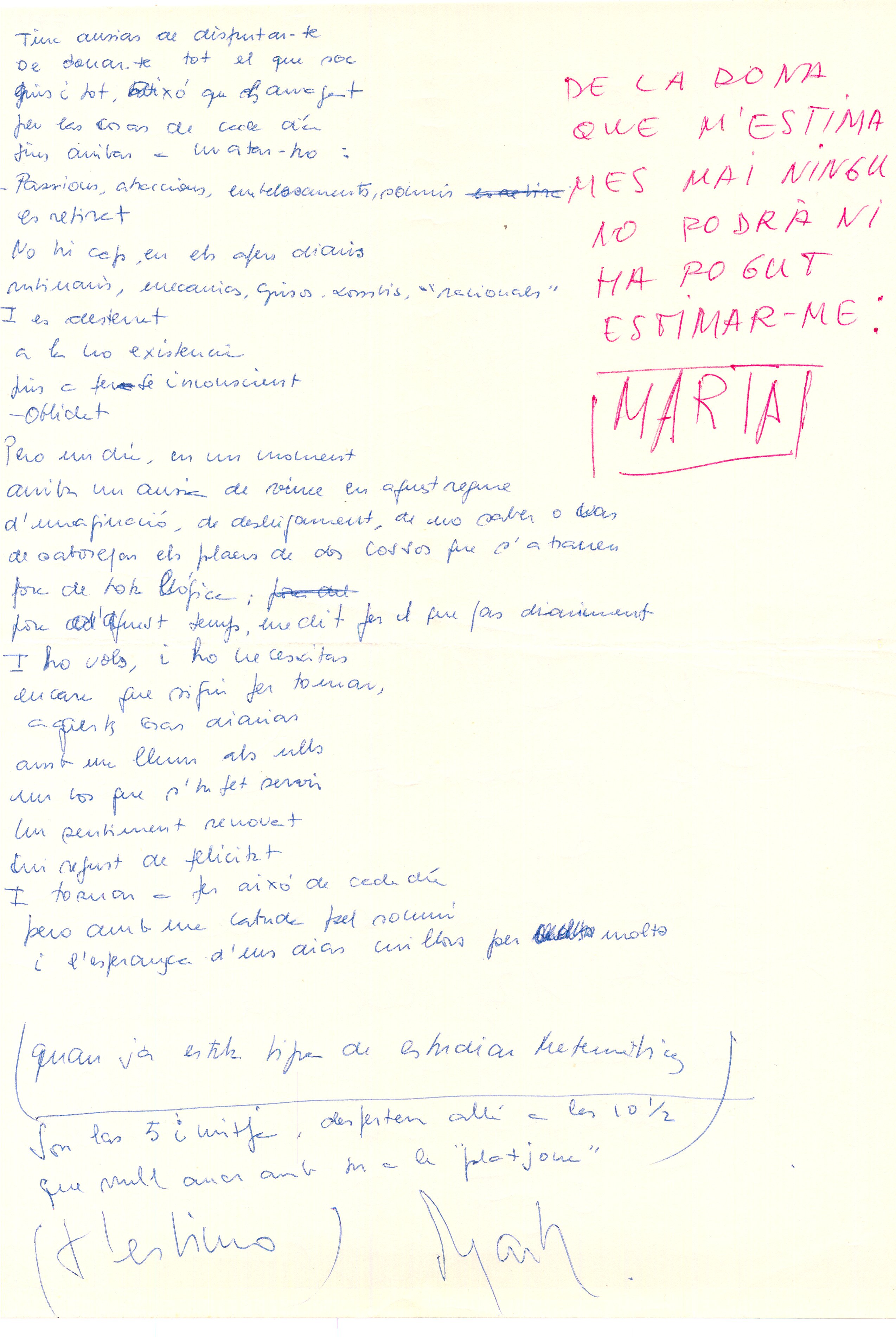 s.d. Cartes manuscrites. 3 fulls. Conjunt de notes dirigides a Marta Molins, i de Marta dirigides a O. M. Pere; Pep; Francesc Tons; Fran; Benet. Sabadell; Caldetes; Barcelona; Marroc.