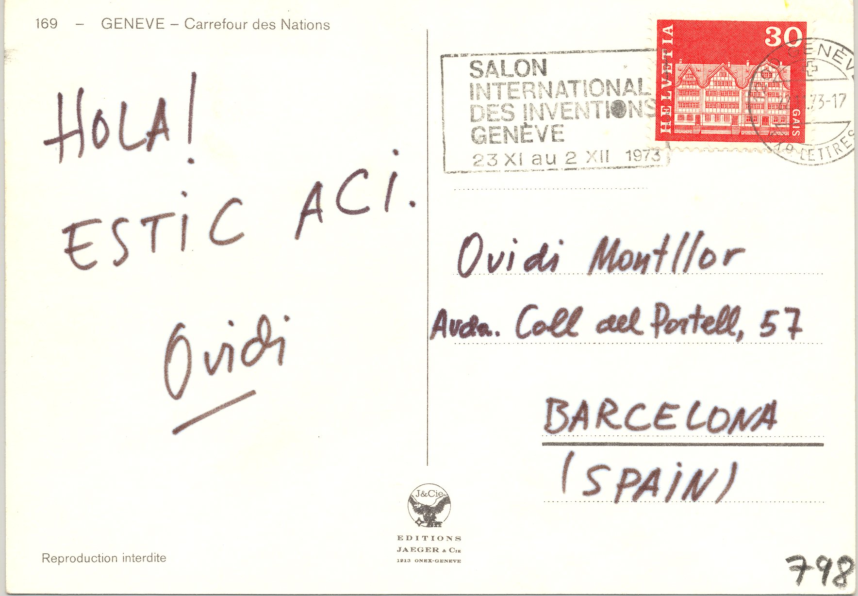 1973, novembre, 22. Postal manuscrita. Per a O. M. d’O. M.