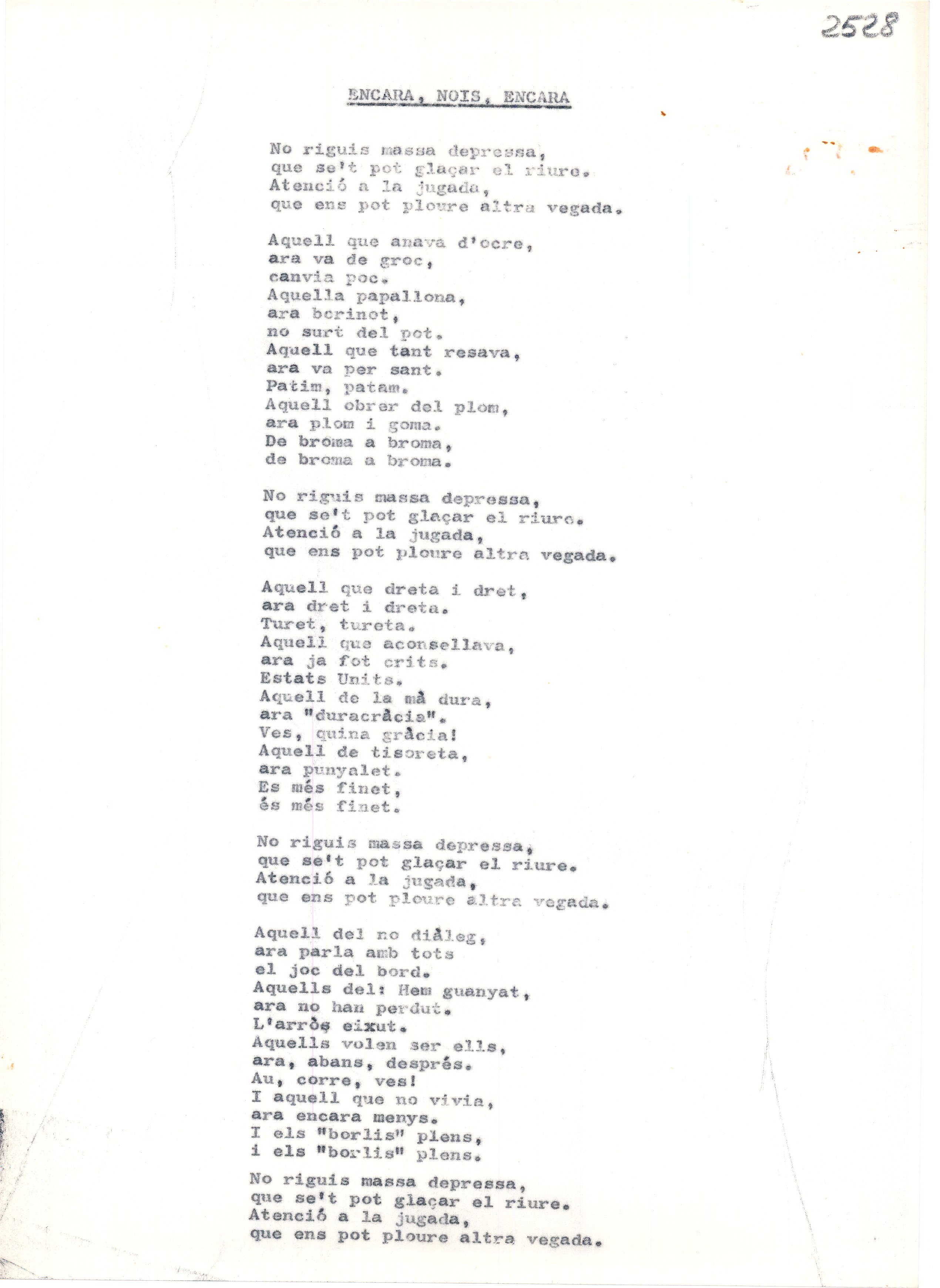 MONTLLOR, Ovidi. Encara, nois, encara. Manuscrita acompanyada de text mecanoscrit.