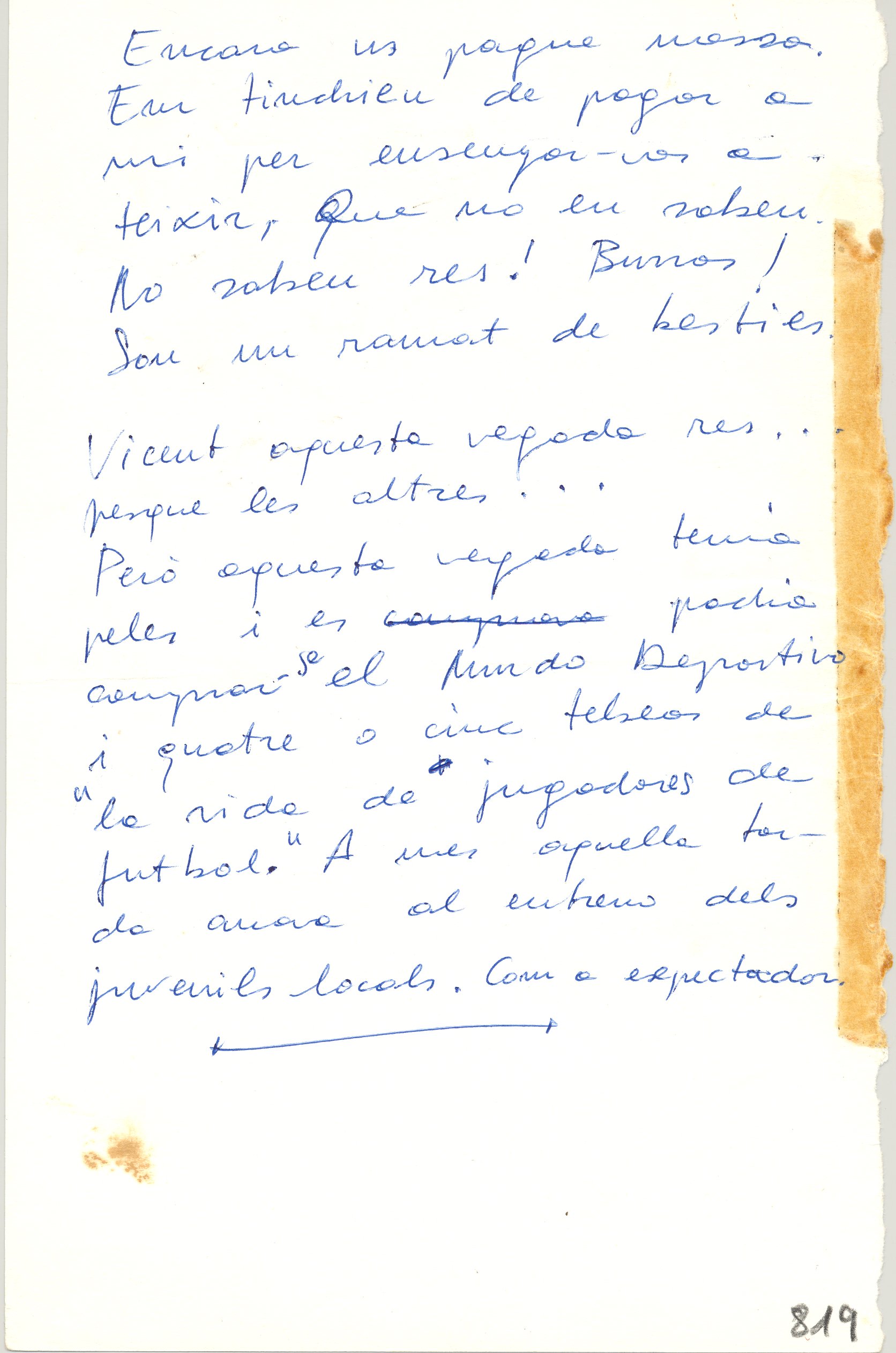 s.d. Cròniques. Manuscrit. 15 fulls. Carpeta. Relat. Personatges: Juano, Jaume, Vicent.