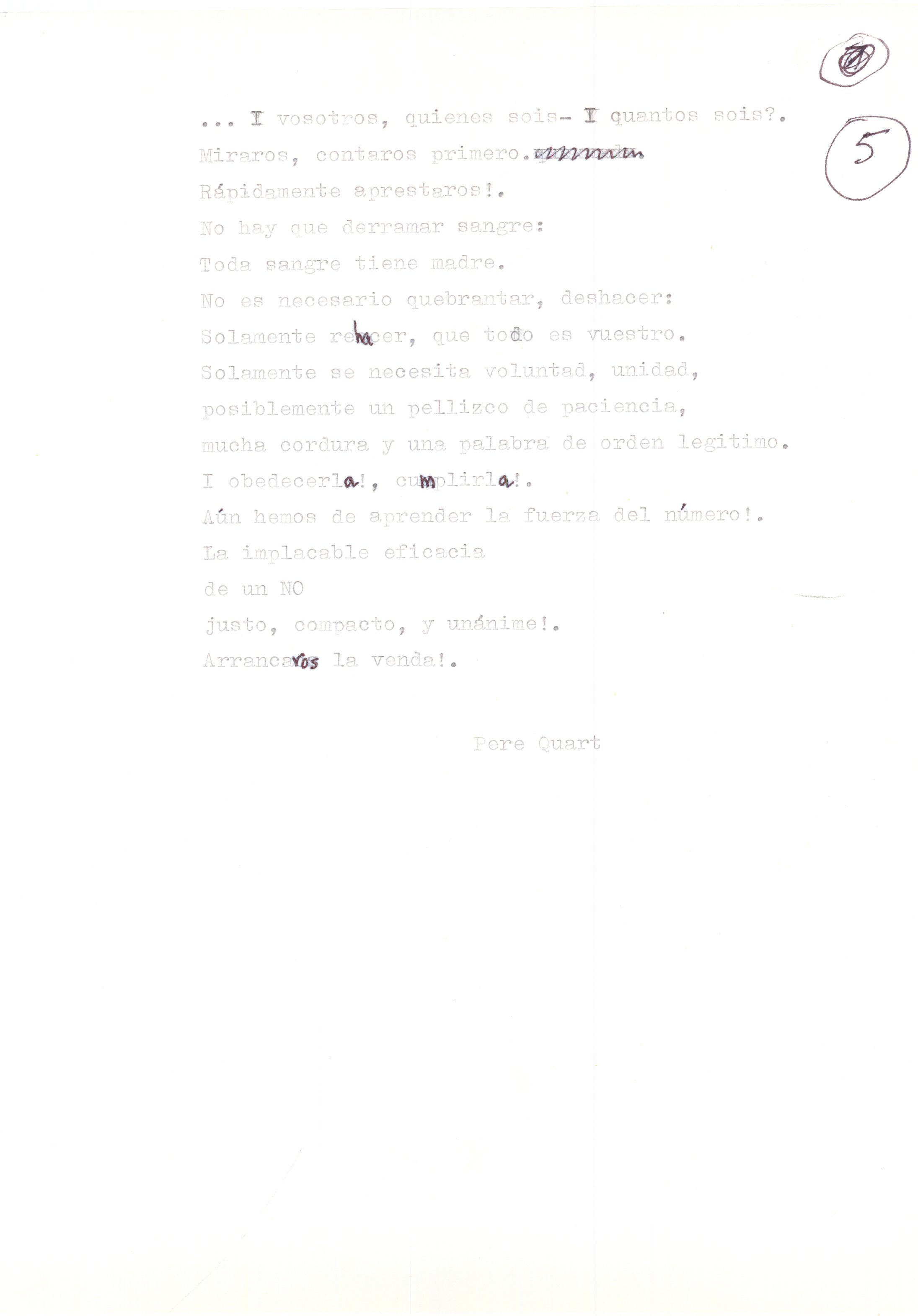 Mecanoscrit. 94 fulls. Carpeta. Muntatge per actuació a Madrid d’O. M. Inclou llistats de cançons, 2 programes de mà, presentacions de les cançons i traduccions de poemes al català, inclou poemes d’altres autors musicats per O. M. Entre altres Perquè vull; La fera ferotge; Als nous amos; Dos anònims; Als companys etc...