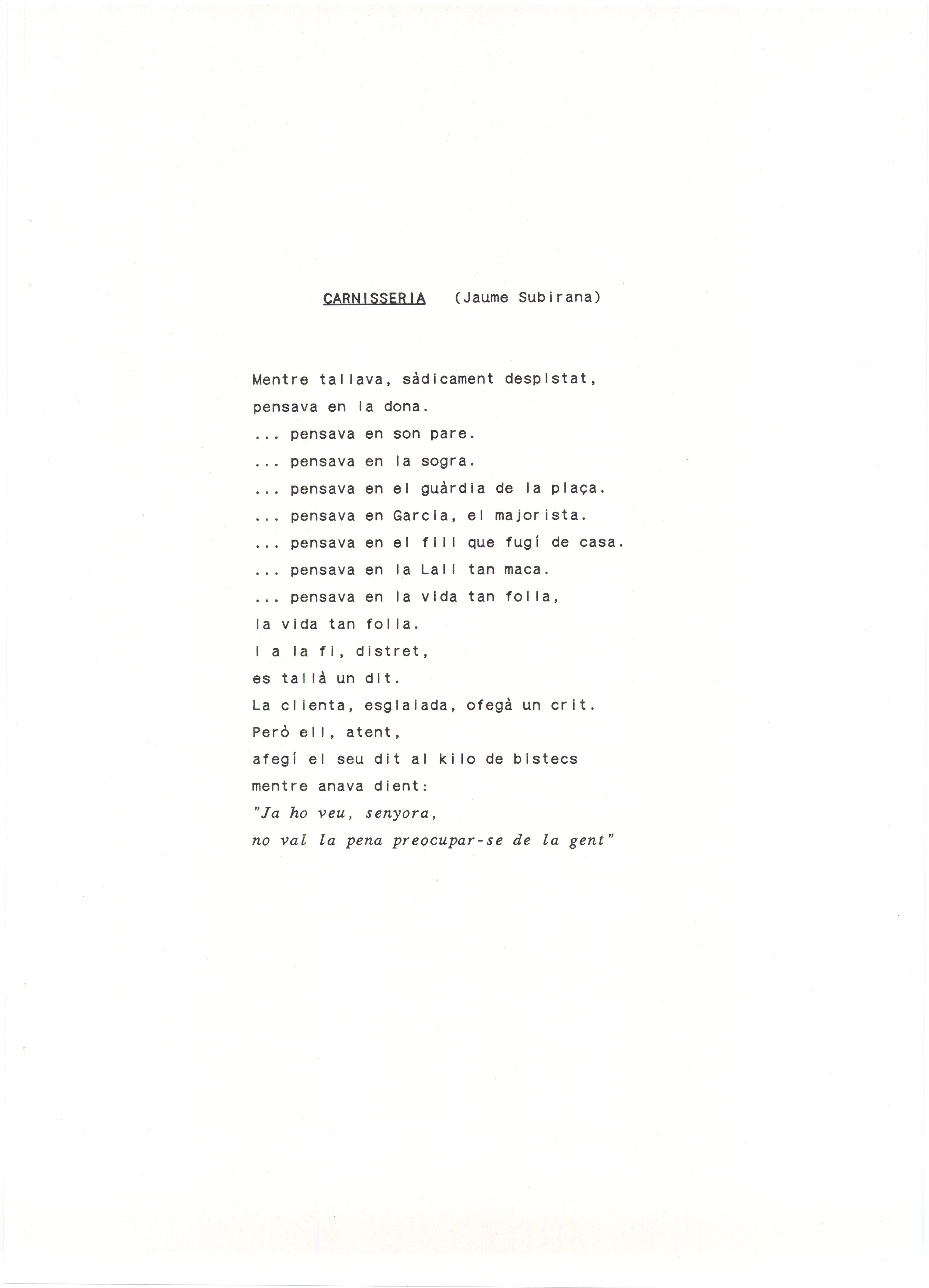 Patronat Català Pro, Europa. Barcelona Chanson. Ovidi Montllor. Toti Soler. Jordi Ruiz. Mecanoscrit. 48 fulls. Carpeta. Poemes traduïts al francés. Inclou retall de premsa de l’actuació, guió de l’acte amb les lletres de les cançons, les cançons en català. Anotacions manuscrites. Inclou poemes d’altres autors musicats per O. M. Entre altres Perquè vull; Autocrítica i crítica; Si mai de tu etc...