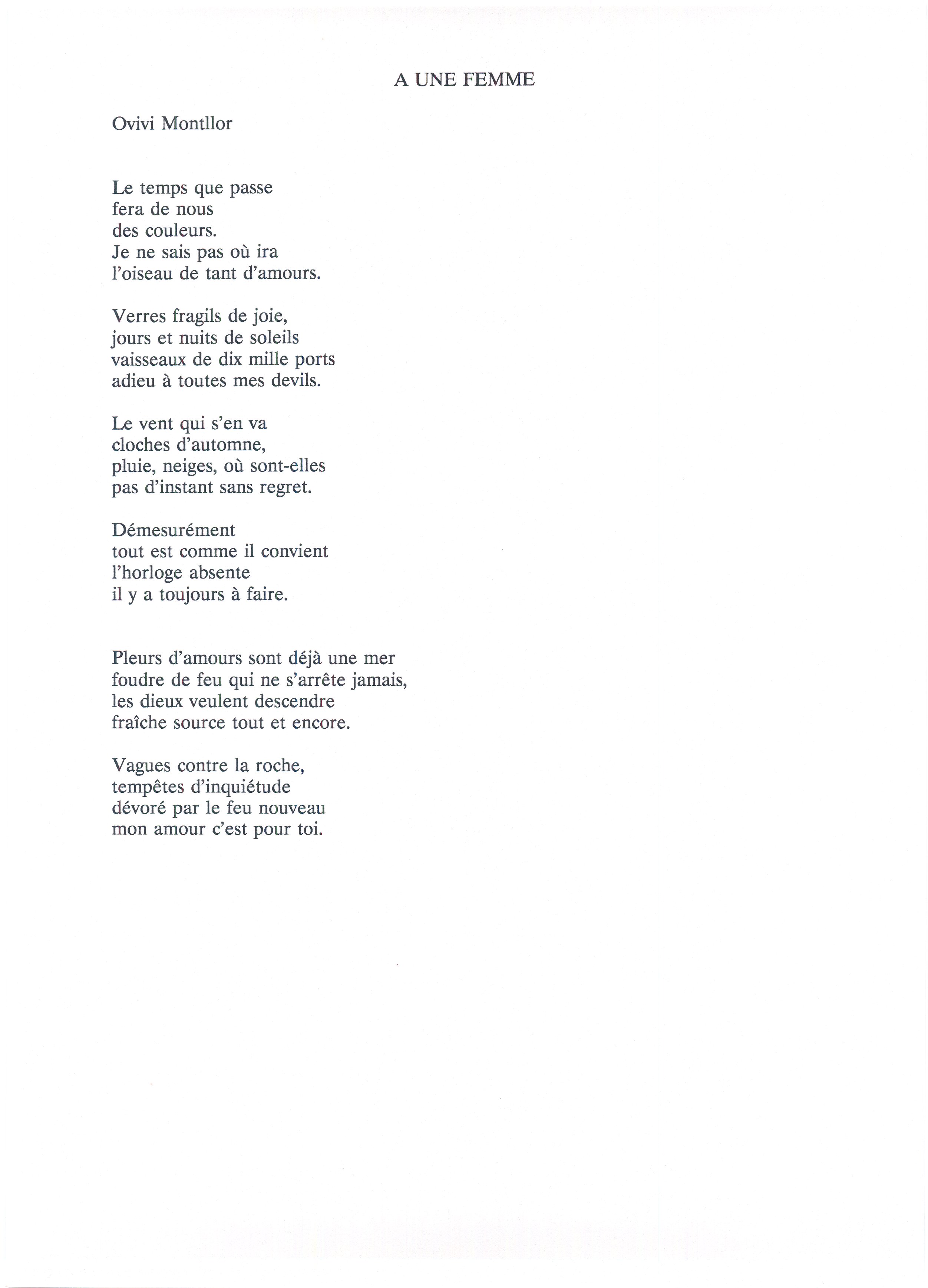 Patronat Català Pro, Europa. Barcelona Chanson. Ovidi Montllor. Toti Soler. Jordi Ruiz. Mecanoscrit. 48 fulls. Carpeta. Poemes traduïts al francés. Inclou retall de premsa de l’actuació, guió de l’acte amb les lletres de les cançons, les cançons en català. Anotacions manuscrites. Inclou poemes d’altres autors musicats per O. M. Entre altres Perquè vull; Autocrítica i crítica; Si mai de tu etc...